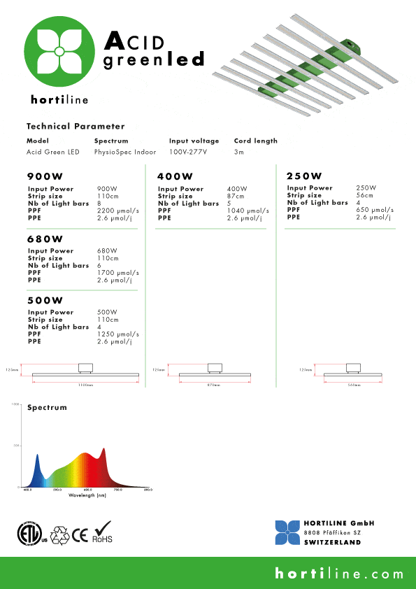 Technical Specifications for the Acid Greenled 900W Lamp